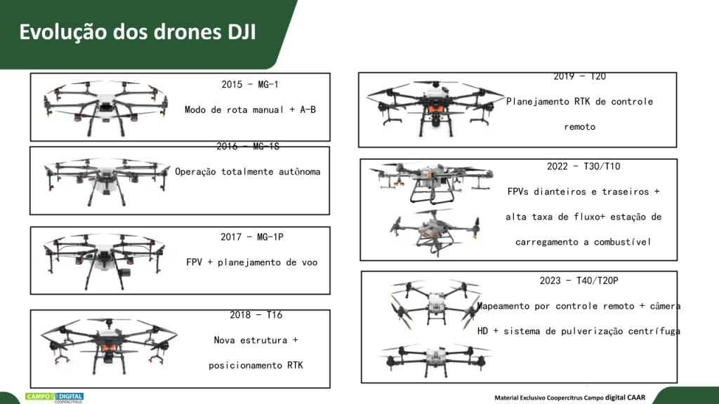 Entre os cooperados presentes no evento de lançamento, Henrique Junqueira, de Bebedouro (SP), foi conhecer de perto as novidades. “Eu tinha um T-20P e queria aumentar o rendimento. Na Agrishow adquiri um T-50, treinei um funcionário para pilotar e o resultado foi excelente, com maior rendimento e aplicação mais eficiente. Esses modelos mais recentes têm funcionalidades interessantes, como modalidade de içamento, maior estabilidade de voo e inteligência artificial que detecta obstáculos com mais precisão. Estou avaliando fazer um upgrade”, relata.